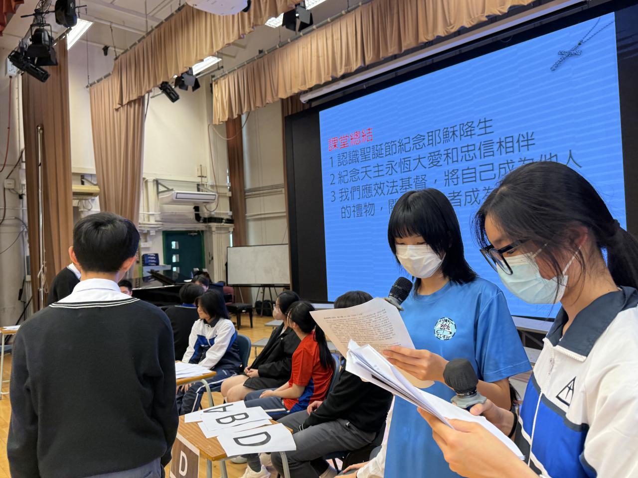 本校於12月17日於RST課為中四級同學舉行宗教周將臨期班際問答比賽,由宗教大使主持。