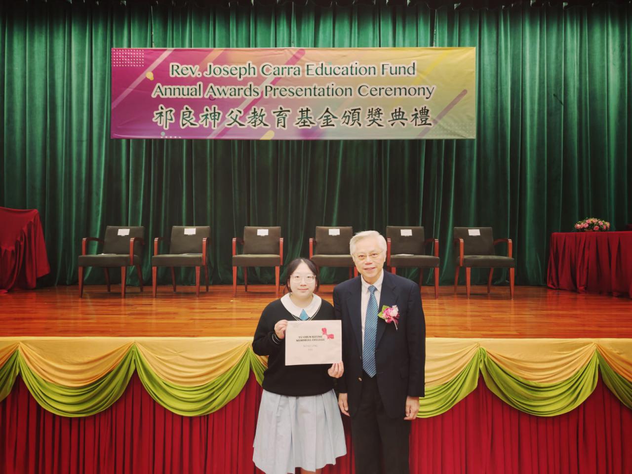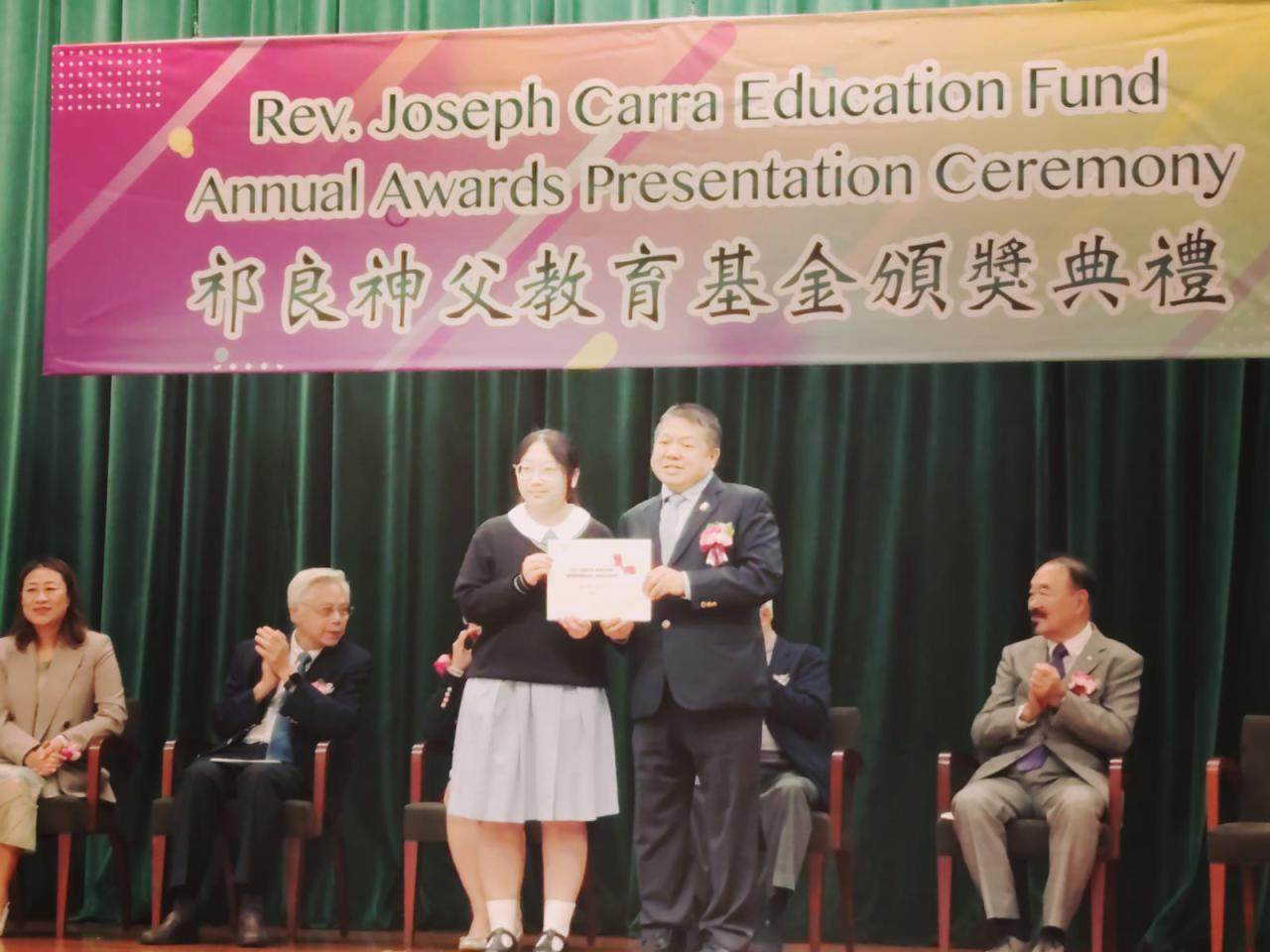 6D蘇家玲品學兼優,榮獲祁良神父獎學金。