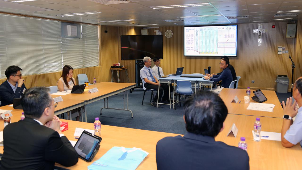 施副局長了解本校在推行數字教育方面的實踐經驗後,對本校的推行情況有非常正面的肯定,並分享其對數字教育的見解。人工智能時代之下,教師不再只是傳統灌輸知識,而是需要擔當更多不同的角色,包括學生學習的激發者、促進者、引導者。同時,作為教育工作者,要讓新一代明白迎接創新科技的同時,需避免過度依賴人工智能,而是應抱著「求真求證」的精神,去面向科技的發展。