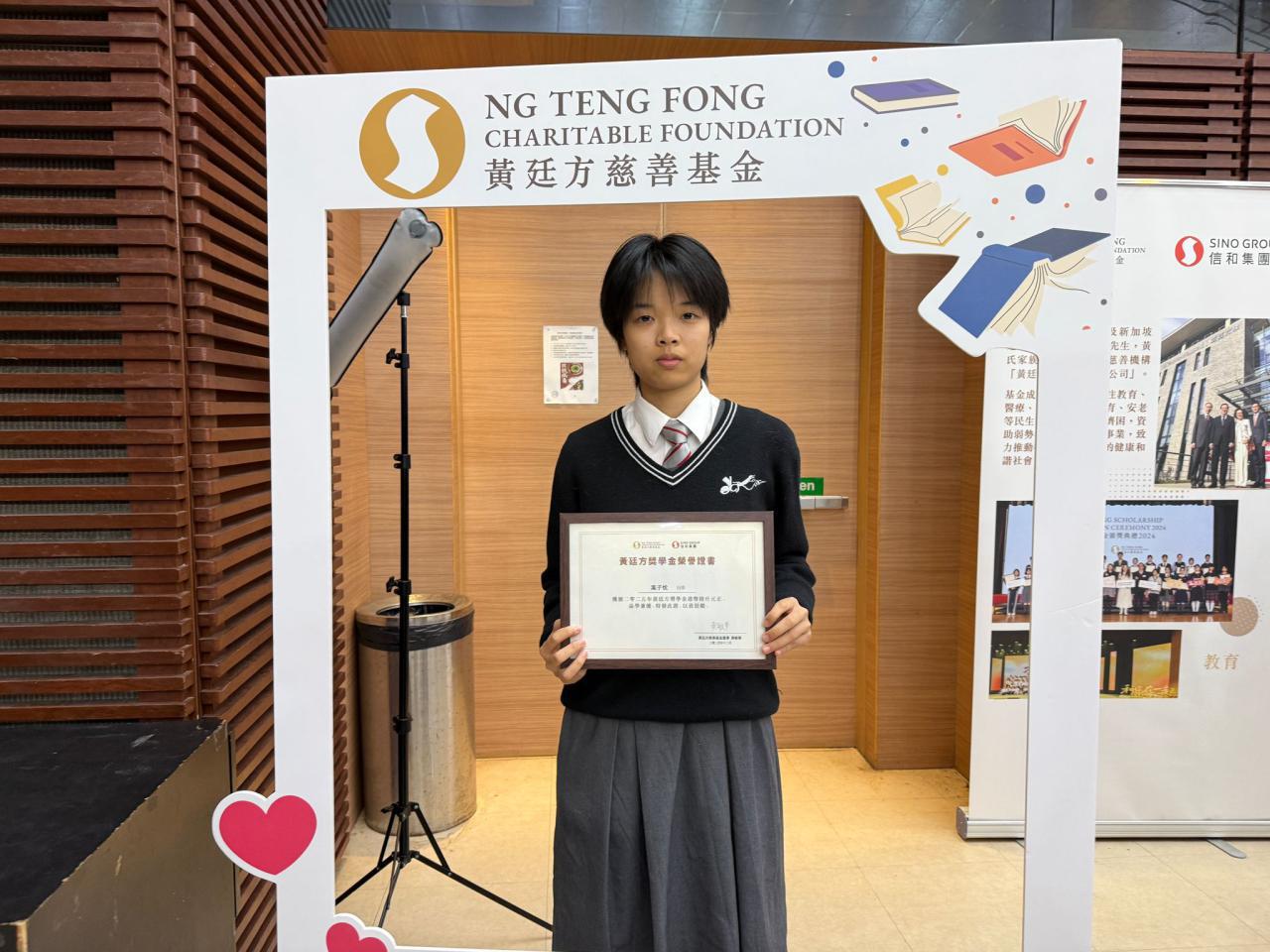本校4D葉子忱品學兼優,獲頒黃廷方獎學金, 2025年12月17日(星期三)下午五時 假尖沙咀街坊福利會領獎。