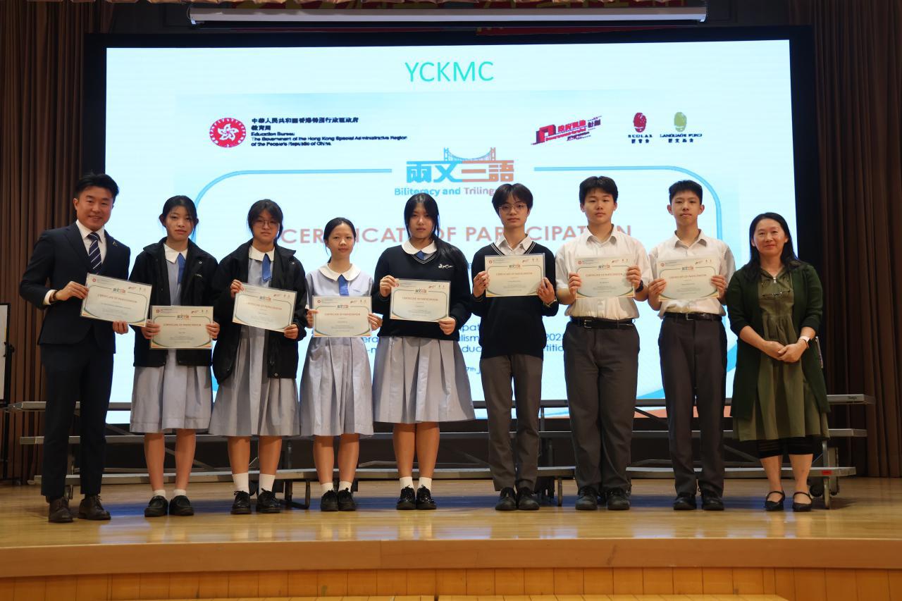 由語文教育及研究常務委員會(語常會)舉辦的「兩文三語運動2025:一分鐘短片製作比賽」已順利完成,我校有兩隊共8位同學透過參賽作品展現他們兩文三語的能力,獲得「語常會」頒發參賽證書,以感謝同學們的積極參與。包括第一組:3A(2024-25)梁銘鴻、邱乾崑、王奕涵,
