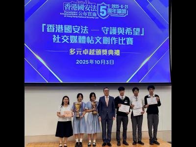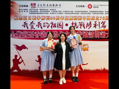 6D蘇家玲、6D葉韻儀在「2025我愛我的祖國‧抗戰勝利篇」金紫荊盃香港校際作文暨普通話朗誦大賽」榮獲「三等獎」